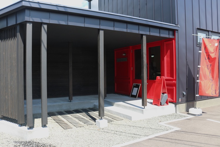 簾舞三区町内会。札幌方面からならば国道230号の旧道、市道簾舞中央線で簾舞小学校前を通り過ぎて簾舞郵便局の少し先、塩屋の看板のあるところで右折。市道砥山簾舞川沿西線道路に向かうと右手に「La・vista」の赤い案内看板があり、その道路先の黒壁と赤い玄関の建物がベーカリー「La・vista」(ラ・ビスタ)。移転新築して令和6年9月24日にリニューアルオープンしたのですがおめでたもあって令和7年3月2日から休業。