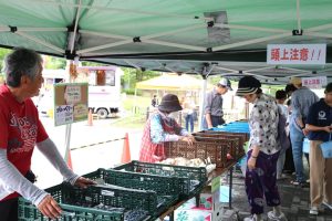 今回も、プルーン等の果物やきゃべつ、ササゲ、なす、トマト、ネギ、新じゃが、ズッキーニ、パプリカなどの野菜や珍しい野菜も売られると思いますが、猛暑のせいもあって出品出店野菜も数も限定されるかもしれません。