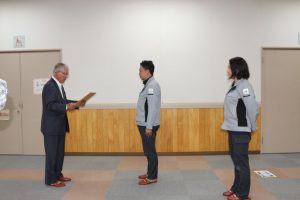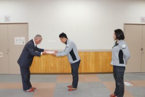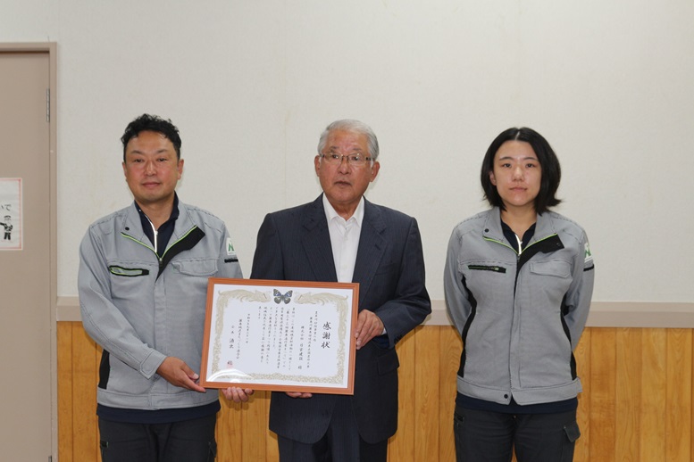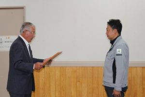 9月25日(木)、社会貢献事業として「簾舞通行屋まつり」への2台の大型発電機貸与とさらに当日の人員提供など行っていただいた「株式会社日栄建設」様に、地区会館の集会室にて「(株)日栄建設)」武田工事係長様に酒出まちづくり連合会会長より感謝状を贈呈いたしました。