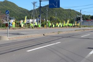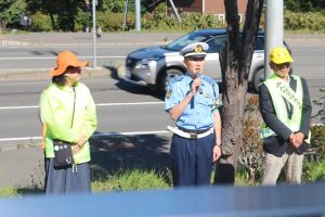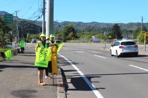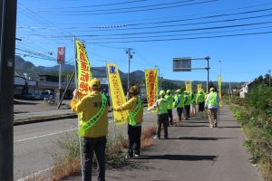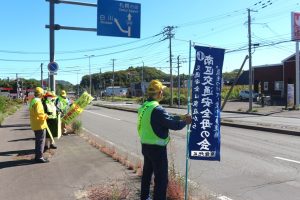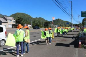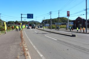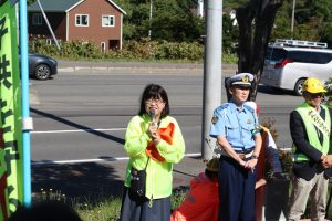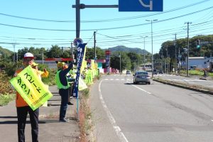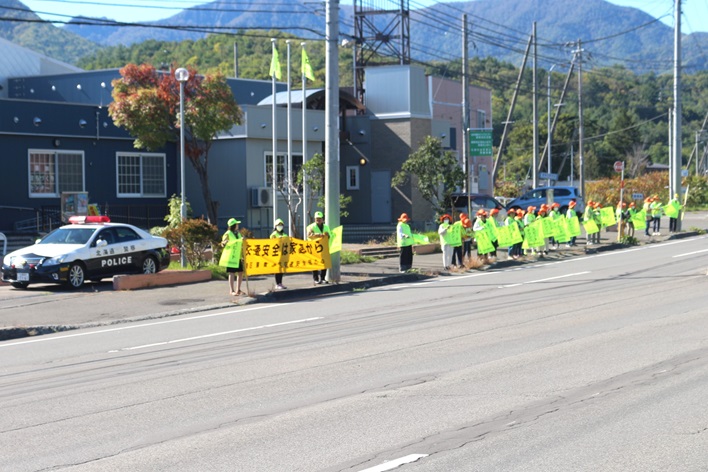 9月30日(火)、10:00~簾舞地区会館前の国道230号線沿線にて、「秋の交通安全市民総ぐるみ運動」の一環として交通安全街頭啓発が行われました。