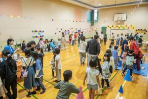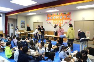 お昼は手作りのうどん。そして午後からは児童会館体育館での子ども縁日。