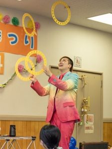 簾舞地区会館集会室で10時から開会。児童会館の音楽クラブ員によるハンドベルや子どもマジックショー、「アベクトワ」の二人によるフルート演奏にピエロのテテによるミニサーカスショーのパフォーマンスが行われます。