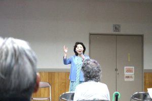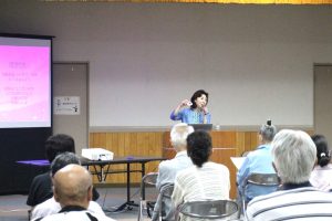 令和7年(2025)には団塊世代が後期高齢者となり、国民5人に一人が75歳以上、3人に一人が65歳以上となり、65歳以上の5人に一人が認知症になるといわれるなかで様々な社会問題が生ずるという「2025年問題」に関連して、女性が一番なりたくないのが認知症であって、その認知症の方へやってはいけない3つのロックがあること。それは、言葉の拘束というスピーチロック、投薬による拘束のドラッグロック、そして身体的な拘束のフィジカルロックで、特に高齢者が自分の思いで言ってみたり動こうとする言動を言葉で拘束するスピーチロックは知らず知らずにやっている可能性があること。介護している人に対して気持ちに余裕がなくなるとついつい、「ちょっと待って!」、「ダメだって言ってるでしょ」、「早くして!」、「さっきも言ったじゃない!」といい、ウロウロ動き回る時には「いいから座ってて!」等と言っていることがある。そうした言い方だと認知症になっても感情は残っているので逆効果になる。なので、「もう少し待っててくれると助かるんだけど」、「えっ、それでどうなったの?」と次の話に促したり、別の話にすり替えて繰り返しを防ぐとか、「どこに行きたいの?私も行くから待っていて」といい替えることで気分が和らげられる、といったお話し。