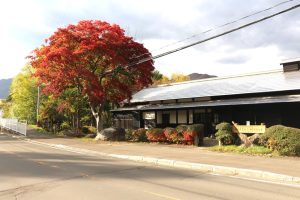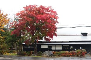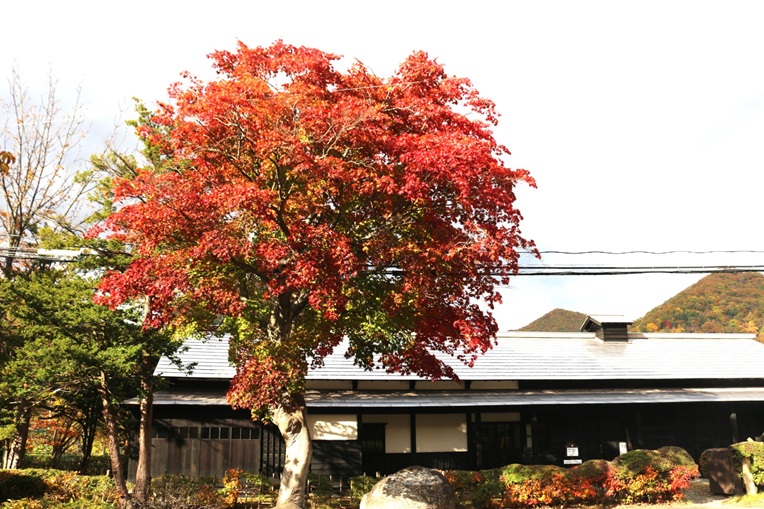 お知らせ「旧簾舞通行屋」前のもみじは昨年と同じく10月22日現在で紅葉がかなり進んでいますが、一部がまだ緑や黄色い部分もある状態です。