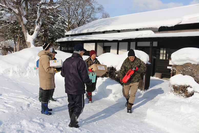 ニュース1月24日の「文化財防火デー」の一環として、1月22日(木)10時から札幌市の指定有形文化財である「旧黒岩家住宅(旧簾舞通行屋)」で自衛消防訓練を行いました。