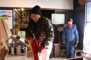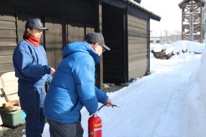 1月24日の「文化財防火デー」の一環として、1月22日(木)10時から札幌市の指定有形文化財である「旧黒岩家住宅(旧簾舞通行屋)」で自衛消防訓練を行いました。