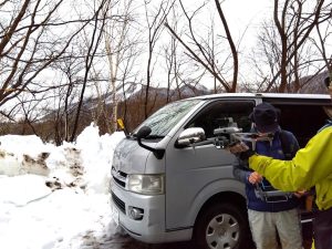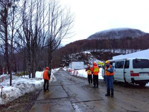 例年になく雪解けが進み、冷え込みもゆるい気温の中、今年は例年とは異なる砥山発電所北側の林道ゲート前に本部を置いて、朝6時過ぎから先発隊が山に入り、午前中をかけて砥山発電所~観音沢エリアの北電敷地および国有林の山中にて「さっぽろボランティア駆除隊」(SVHT)によって有害駆除を実施しました。