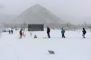 冬期間は閉鎖されている「小金湯さくらの森」ですが、このツアーのために施設管理者の横浜植木さんに駐車スペースの除雪をしていただいての開催です。