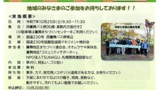 お知らせ <お知らせ>10/25 国道230号板割沢道路拡幅記念植樹期間の西簾舞バス例周辺での景観保全活動を行います!お手伝いください。 今年も10月25日(土)9:30~11:30、案内チラシにあるように、国道230号協働型道路マネジメント検討会の主催によ... 2025.10.09 お知らせまちセンまちづくり連合会