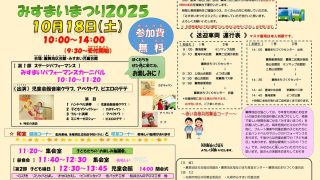 お知らせ 10/9<お知らせ>地区社会福祉協議会主催異世代交流事業「みすまいまつり2025」が簾舞地区会館で開催(10/18) 今年も10月18日(土)、簾舞地区会館とみすまい児童会館を会場に異世代交流事業の「みすまいまつり2025」を開催します。... 2025.10.09 お知らせまちセンまちづくり連合会